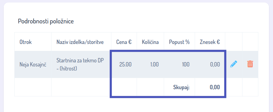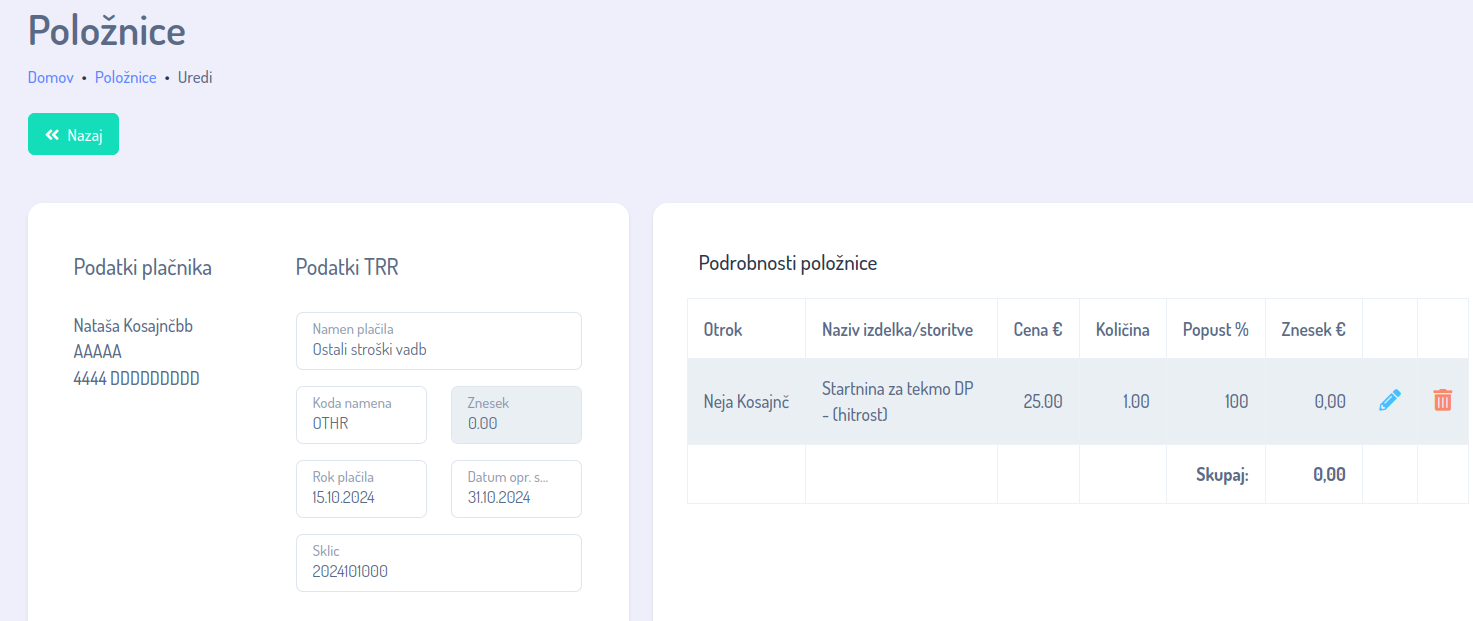 Slika 2 - Podrobnosti položnice s skupnim zneskom 0,00 €