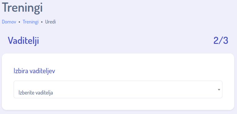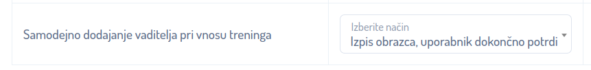 V meniju Admin => Nastavite je mogoča nastavitev kako se dodajo nosilci skupine (vaditelji), ko ustvarimo trening.