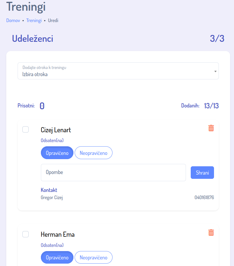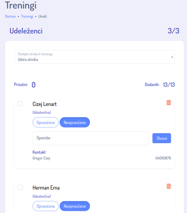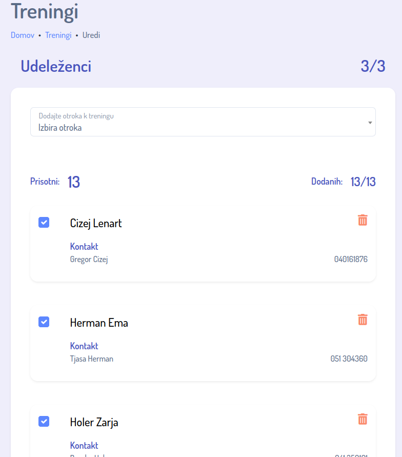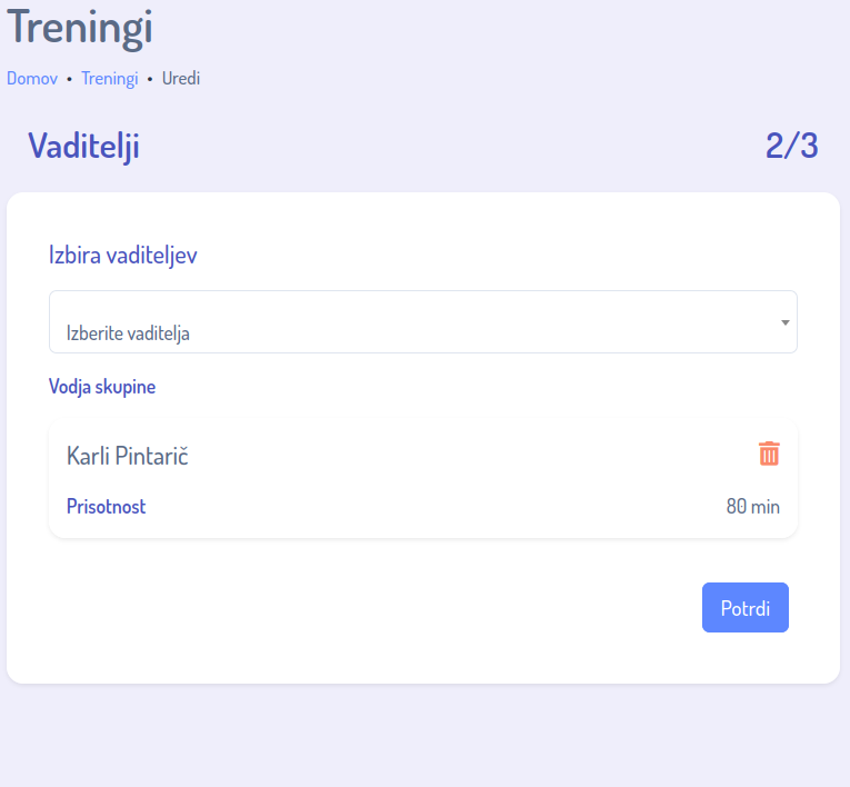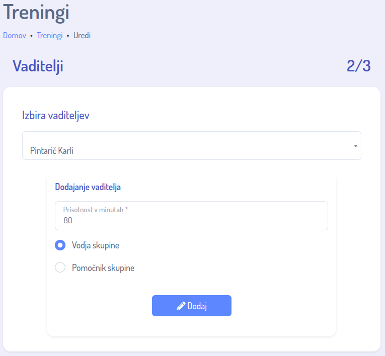 Tretja je, da se nosilec skupine samodejno doda k treningu.
