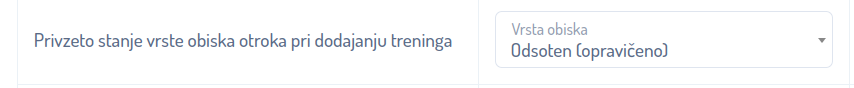 V meniju Admin => Nastavite je mogoča nastavitev kakšna vrsta obiska je privzeta, ko ustvarimo trening.