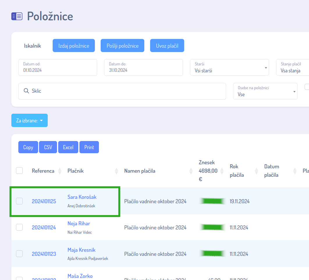 Za ogled podrobnosti položnice dostopate po novem preko sklica. S klikom na plačnika vas Klubko preusmeri na podrobnosti plačnika.